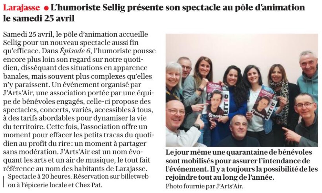 Le Progrès du 02/04/26 - L'humoriste Sellig présente son spectacle au pôle d'animation le samedi 25 avril
