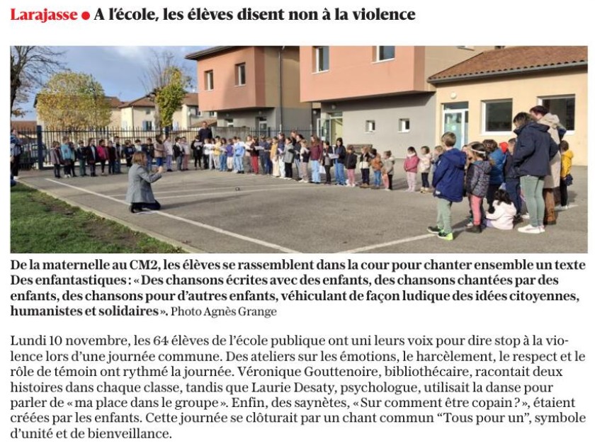 Le Progrès du 15/11/25 - A l'école, les élèves disent non à la violence