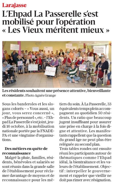Le Progrès du 18/10/25 - L'Ephad La Passerelle mobilisé pour l'opération "Les vieux méritent mieux"