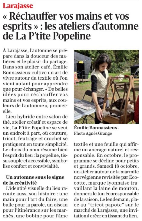 TéléchargerLe Progrès du 18/10/25 - "Réchauffer vos mains et vos esprits": les ateliers d'automne de La P'tite Popeline
